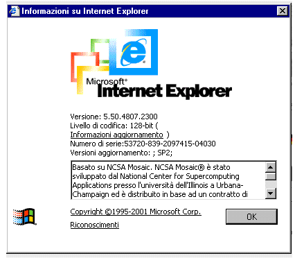 Selezionare la voce "?" dalla barra dei Menù e quindi cliccare su "Informazioni su Internet Explorer" | ||