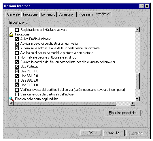 selezionare la voce "Usa SSL 3.0" se non già selezionata. Premere il tasto "OK" | ||