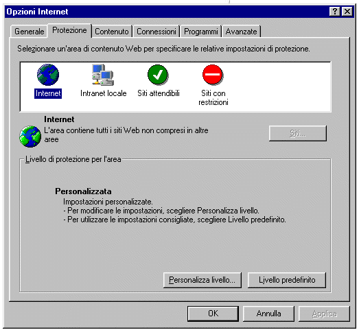 | Selezionare la scheda "Protezione", apparirà la