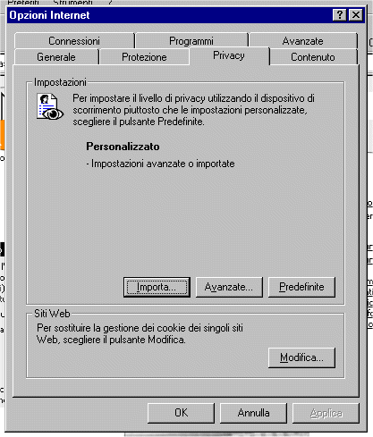 | Selezionare la scheda "Privacy", apparirà la
