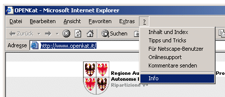| ZERTIFIZIERUNG OPENKAT WEBSITE Mit Beginn 5. März 2004 erfolgt der Zugriff und das Surfen im Openkat-System in geschützter Verbindung. Sollten sich Zugriffsprobleme zur Website ergeben, wird angeraten die Kompatibilität des benützten Browsers für das Surfen in geschützten Verbindungen zu überprüfen. Folgen Sie den genauen Angaben im Paragraph „ Konfiguration des Browsers Internet Explorer für das Surfen in der zertifizierten Openkat-Website".