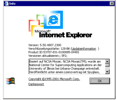 Überprüfen Sie die Version am Stichwort „Version:" im diesem Falle ist die Version „5.50". Diese Information ist unentbehrlich für eine korrekte Konfiguration des Browsers. | ||