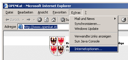 Wählen Sie das Stichwort "Extras" aus der Menuleiste und klicken Sie auf "Internetoptionen..." | ||