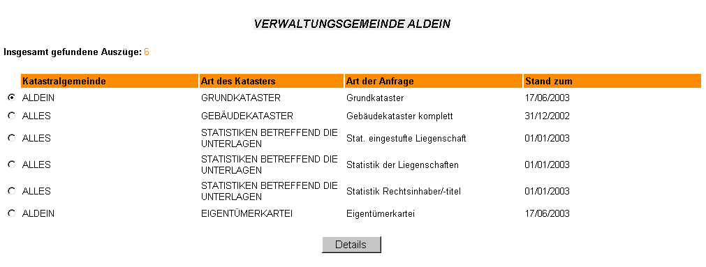 ![]() Wählen Sie eine Position der Liste und drücken Sie die Schaltfäche "Detail" um die Daten der ausgewählten Anfrage herunterzuladen. SIEHE AUCH:- Anfrage Herunterladen - Datenlieferung - Anfragekategorie |