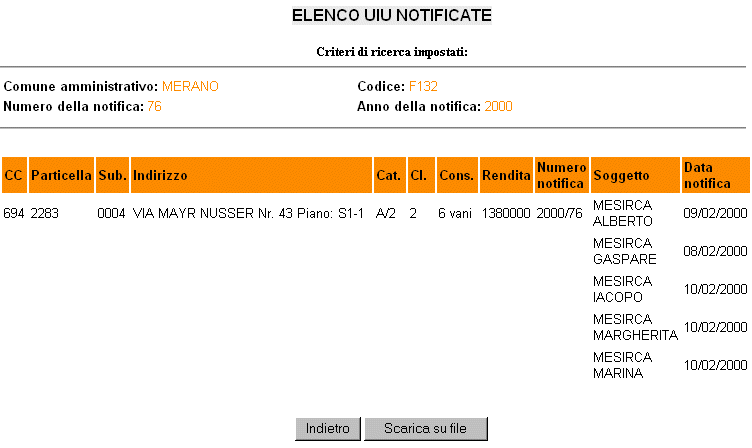 dei soggetti a cui č stata inviato l'atto di notifica, l'unitą immobiliare