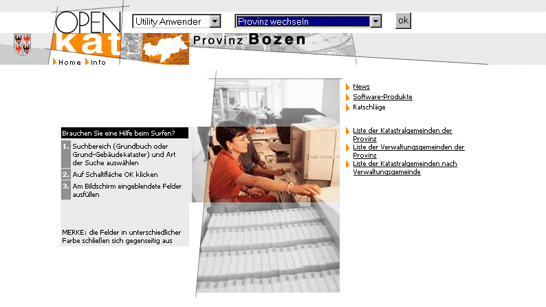 | Provinz wechseln Wenn Sie die Provinz wechseln wollen, wählen Sie "Provinz wechseln" aus dem Verzeichnis "Utiltiy-Anwender". Folgende Seite wird eingeblendet: |