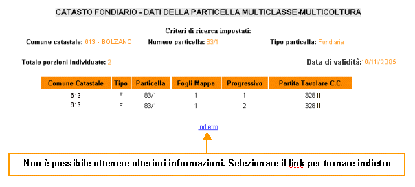 ![]() Da questa schermata non possono essere effettuate ulteriori richieste. Per tornare indietro si prema il tasto Indietro del proprio browser oppure il tasto indietro