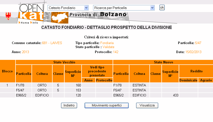 E' possibile visualizzare il dettaglio del prospetto della divisione delle particelle |