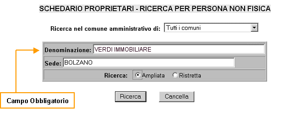 Come si effettua una ricerca per persona non fisica in ambito comunale o provinciale