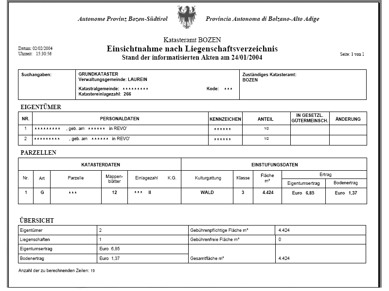 | Einsichtnahme nach Liegenschaftsverzeichnis Infolge der "Bestätigung der Einsichtnahme