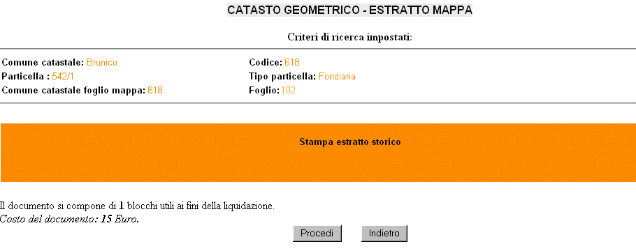 Conferma richiesta documento Prima di visualizzare il documento richiesto, viene presentato un riassunto dei dati richiesti ed il numero di pagine logiche di cui si compone il documento così reperito. A questo punto l'utente può decidere se proseguire e, quindi, contabilizzare la transazione, oppure se terminare l'operazione. Un esempio di pagina di conferma documento è la seguente: |
