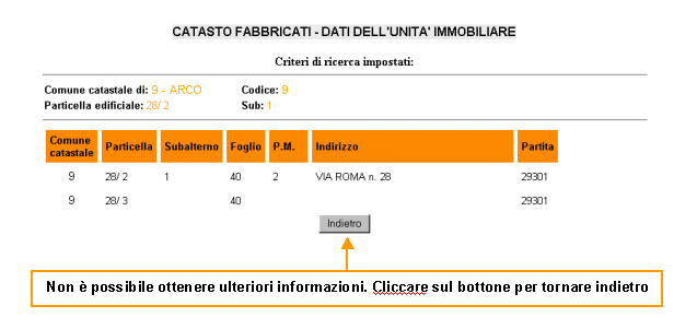 Da questa schermata non possono essere effettuate ulteriori richieste. Per tornare indietro si prema il tasto Indietro del proprio browser oppure il tasto indietro