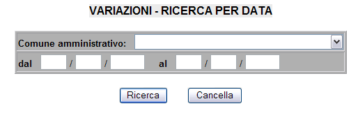 Come si effettua una ricerca per UIU variate Dalla HOME PAGE selezionare Catasto Fabbricati, la voce Elenco UIU variate e cliccare sul bottone ok. Verrą visualizzata la maschera per la scelta del comune amministrativo e l'inserimento delle date per delimitare il periodo di ricerca. |