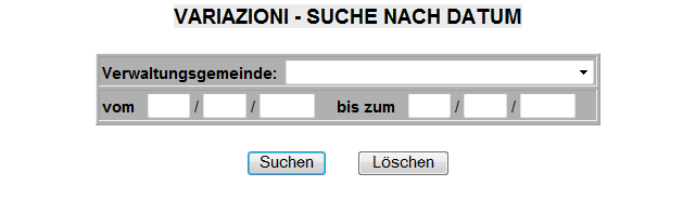 Aus der HOMEPAGE wählen Sie "Gebäudekataster - Verzeichnis Geänderter Liegenschaften" aus und klicken Sie dann auf die Schaltfläche ok. Es wird eine Maske eingeblendet, in der Sie die Suchkriterien nach Verwaltungsgemeinde und Zeitraum einstellen können. |