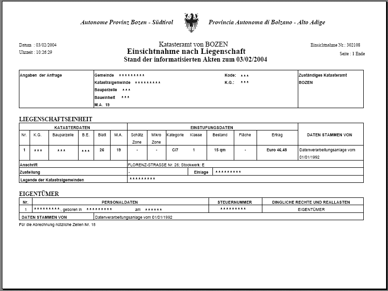 | Einsichtnahme nach Liegenschaft Infolge der "Bestätigung der