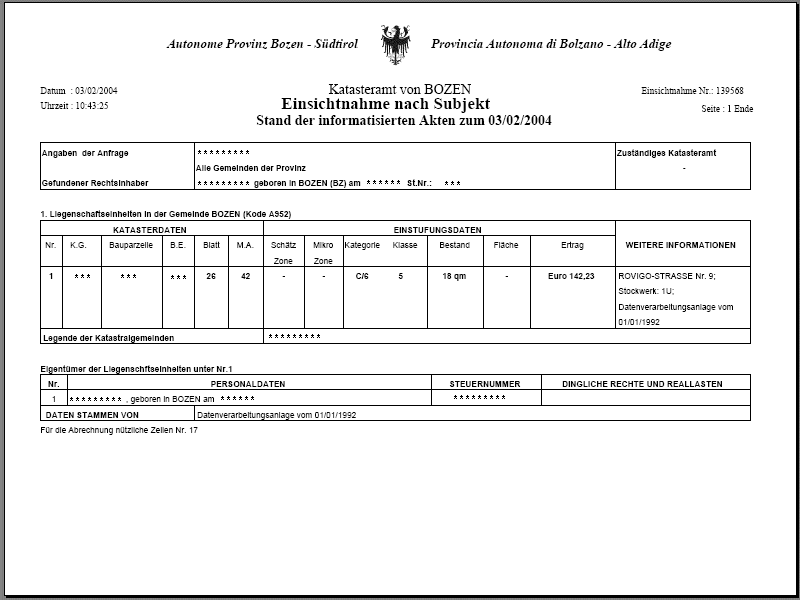 | Einsichtnahme nach Rechtsinhaber Infolge der "Bestätigung der