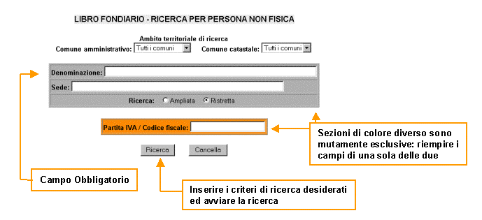 Come si effettua una ricerca per persona non fisica in ambito comunale o provinciale