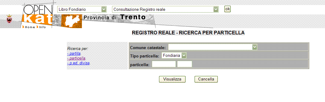 Dalla HOME PAGE selezionare Libro Fondiario, Consultazione Registro Reale e
