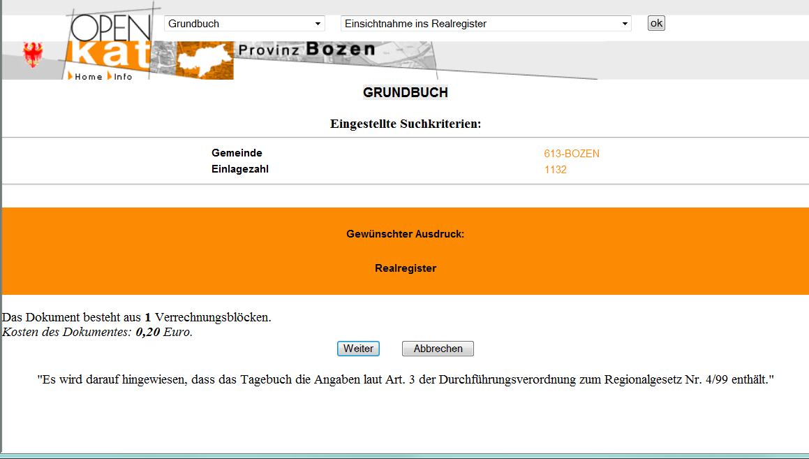 Auf "Bestätigen" klicken um, den Ausdruck zu erhalten und den Vorgang zu berechnen. Der Ausdruck wird in einer neuen Seite angezeigt.