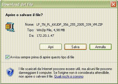 Cliccare il tasto Salva e procedere al salvataggio del file visualizzando la finestra Salva immagine. Il file verrą salvato in formato ZIP.