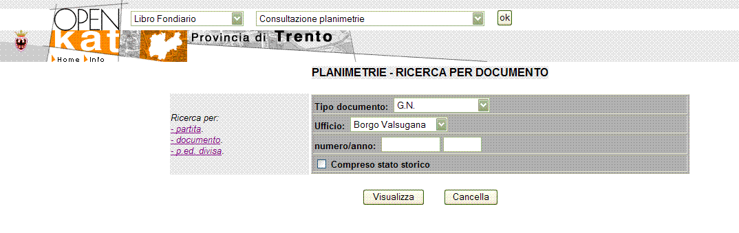 Dalla HOME PAGE selezionare Libro Fondiario, Consultazione planimetrie e