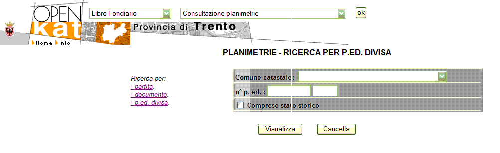Dalla HOME PAGE selezionare Libro Fondiario, Consultazione planimetrie e