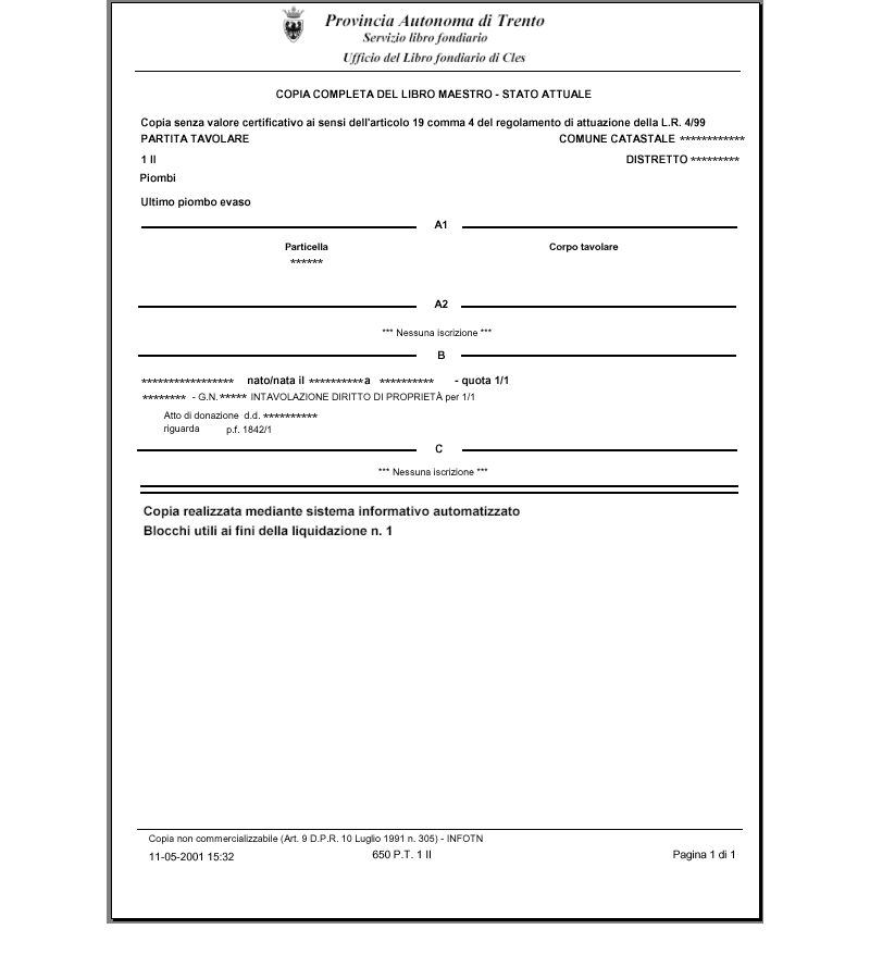 in cui viene visualizzato il documento PDF che riporta la visura