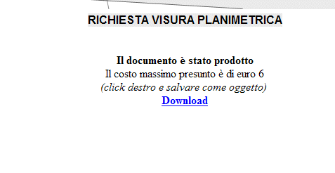 Questa schermata consente di prelevare il documento in formato PDF relativo alla richiesta planimetrie appena compilata.