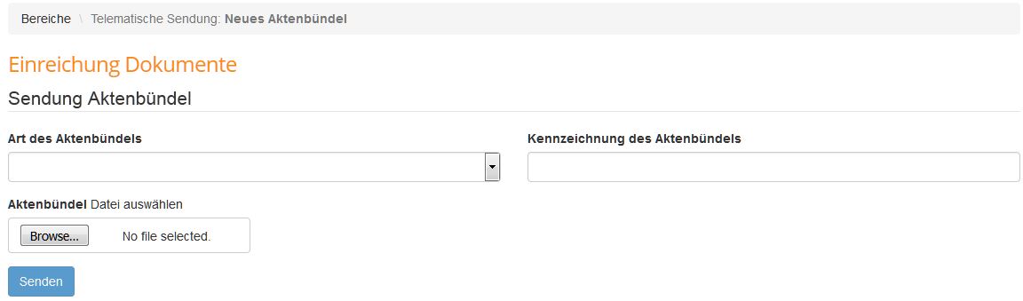 Mit einen Klick auf die Schaltfläche Weiteres Dokument senden wird die Seite Sendung Aktenbündel geöffnet.
